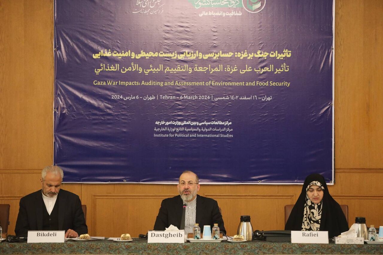 به گزارش ایرنا، نشست «تاثیرات جنگ بر غزه؛ حسابرسی و ارزیابی زیست محیطی و امنیت غذایی» به همت دیوان محاسبات کشور و فراکسیون محیط زیست مجلس شورای اسلامی در محل مرکز مطالعات سیاسی و بین المللی وزارت امور خارجه برگزار شد.